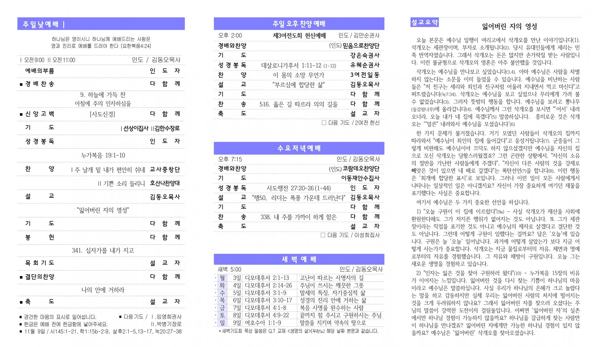 담임목사 : 김동오 목사