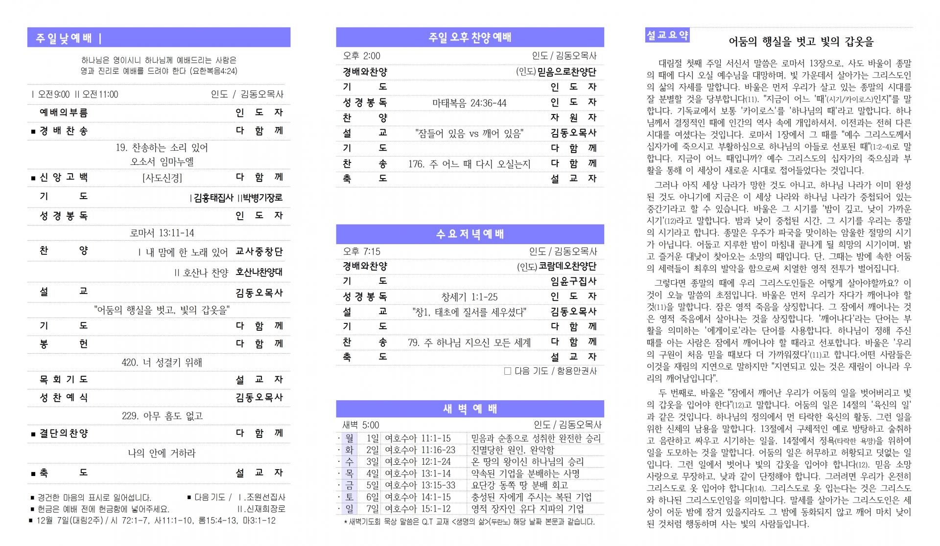 담임목사 : 김동오 목사