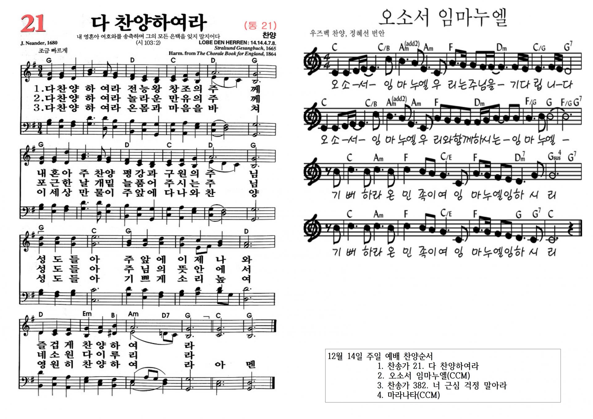 2025년 12월 21일 주보 및 찬양콘티