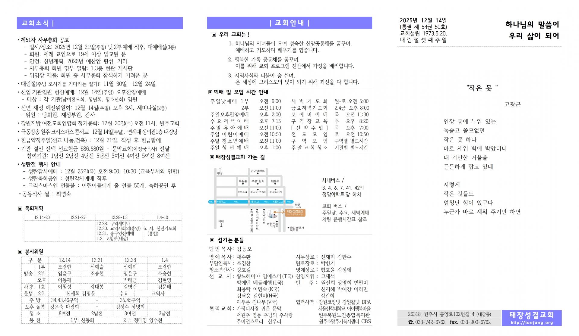 2025년 12월 14일 주보 및 찬양콘티